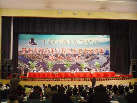 12月18日上午,濰坊市市政工程有限公司在濰坊富華國際會議中心舉行慶典活動,慶祝企業(yè)晉升為國家市政公用工程施工總承包一級資質(zhì)。中國市政協(xié)會秘書長果有剛、山東省建設(shè)廳城建處處長周善東、濰坊市政府副秘書長于為凱、市建設(shè)局副局長李振龍、山東省市政工程協(xié)會主任梁紅兵以及省內(nèi)市政協(xié)會理事單位的代表青島城建集團(tuán)有限公司總經(jīng)理余信武等應(yīng)邀參加慶典活動。慶典活動由市建設(shè)局副局長葛繼卿主持,濰坊昌大建設(shè)集團(tuán)有限公司董事長、黨委書記徐鵬強(qiáng)致歡迎辭,市政公司總經(jīng)理徐世立介紹市政公司情況。慶典活動上,濰坊市政府副市長劉偉專門發(fā)來賀信,對市政公司晉升為一級資質(zhì)企業(yè)表示祝賀,對市政公司近年來的發(fā)展,特別是依托昌大建設(shè)集團(tuán)實施改制后所取得的成績給予充分肯定,對市政公司今后的發(fā)展充滿信心并寄予厚望。