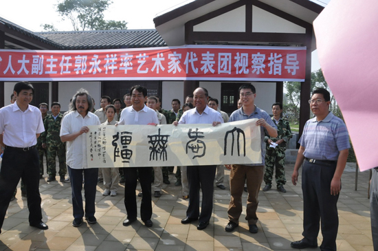 6月3日上午,四川省人大副主任郭永祥率藝術家代表團赴北川新縣城慰問援建士。藝術家們或現(xiàn)場作畫,或引亢高歌,或與援川員工同臺表演,真誠表達他們對山東人民援川的感激之情。集團公司援川員工還為藝術家代表團合唱《援川之歌》。慰問演出前,郭永祥副主任還視察了集團公司援建的安居房工程,藝術家們還實地參觀了新的安居房家居,看到漂亮、舒適的安居房,聽著援川人的感人事跡,藝術家們表達了對援川將士的由衷贊嘆,并再一次代表北川縣的受災同胞對山東的援建表示真誠的謝意。 ![]() 圖為藝術家展示藝術作品