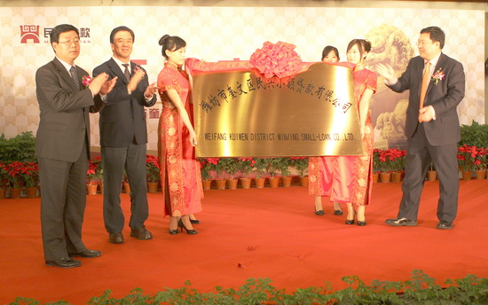 1月22日上午,由集團公司控股設(shè)立的濰坊市奎文區(qū)民興小額貸款有限公司,在濰坊國際金融大廈舉行了隆重的開業(yè)儀式。參加開業(yè)慶典儀式的有山東省財政廳副廳長龐敦之及民生銀行山東省分行行長馬琳,濰坊市人民政府副市長夏芳晨及市金融辦、市財政局、市銀監(jiān)局、市人民銀行等市直單位、部門負責(zé)人,奎文區(qū)委副書記、區(qū)長李輝,副區(qū)長賈平及奎文區(qū)金融辦負責(zé)人,市工商銀行、中國銀行、交通銀行、農(nóng)信聯(lián)社、中信銀行、招商銀行、農(nóng)業(yè)銀行、建設(shè)銀行、濰坊銀行、華夏銀行、民生銀行、浦發(fā)銀行等市銀行系統(tǒng)負責(zé)人,駐奎文區(qū)的金融機構(gòu)中國銀行、工商銀行、建設(shè)銀行、濰坊商行、農(nóng)業(yè)銀行、新華路農(nóng)信聯(lián)社等負責(zé)人,泰華集團、博悅地產(chǎn)、東方鋼管、中百集團等集團公司重要客戶主要負責(zé)人,華和擔保公司、巨鑫擔保公司、水建總公司、恒泰擔保公司、泰翔商貿(mào)公司、奇正商務(wù)咨詢公司、博揚投資咨詢公司、吾愛設(shè)計有限公司、南京龍蟠石化濰坊分公司、速比達連鎖汽修總經(jīng)理等重要相關(guān)客戶,濰坊市建設(shè)局局長李廣東及局領(lǐng)導(dǎo)班子全體、局機關(guān)各科室主要負責(zé)人、局屬各單位主要負責(zé)人,集團公司董事長、民興小額貸款公司董事長徐鵬強,民興小額貸款公司股東單位負責(zé)人,集團公司高管層領(lǐng)導(dǎo)滕忠斌、李坤明、姜建魯、穆乃杰、張學(xué)智、閆鵬,總經(jīng)理助理張修雙、譚瑞明,總部部門負責(zé)人、各基層單位(子公司)經(jīng)理書記共計170余人參加了開業(yè)慶典儀式。 ![]() 市金融辦主任李傳順宣讀省金融辦同意公司設(shè)立方案的批復(fù) ![]() 董事長徐鵬強匯報公司籌建情況 ![]() 奎文區(qū)區(qū)委副書記、區(qū)長李輝致辭 ![]() 濰坊市副市長夏芳晨講話 ![]() 省財政廳廳長龐敦之、民生銀行省分行行長馬琳、副市長夏芳晨揭牌