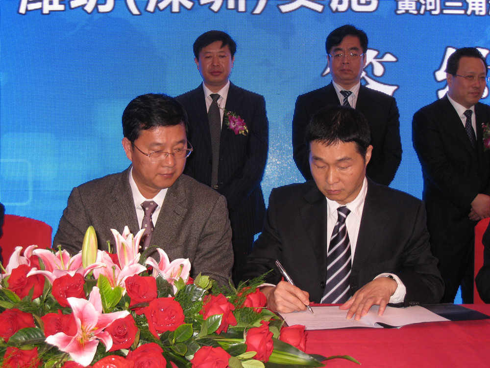 2012年4月6日,濰坊(深圳)實施山東半島藍色經(jīng)濟區(qū)、黃河三角洲高效生態(tài)經(jīng)濟區(qū)戰(zhàn)略合作懇談會在深圳召開,濰坊市委書記許立全等市領導出席了會議,集團公司董事長、黨委書記徐鵬強應邀參加懇談會并參加重點項目簽約活動。