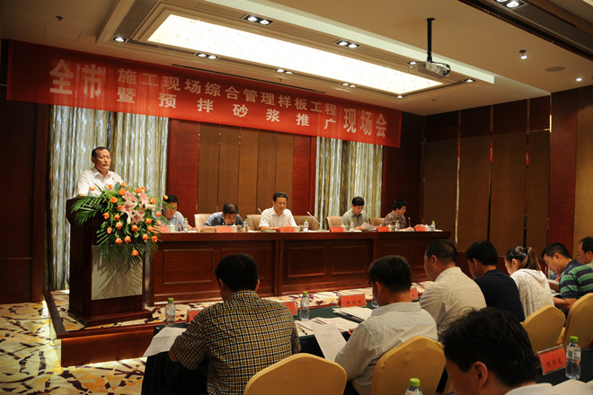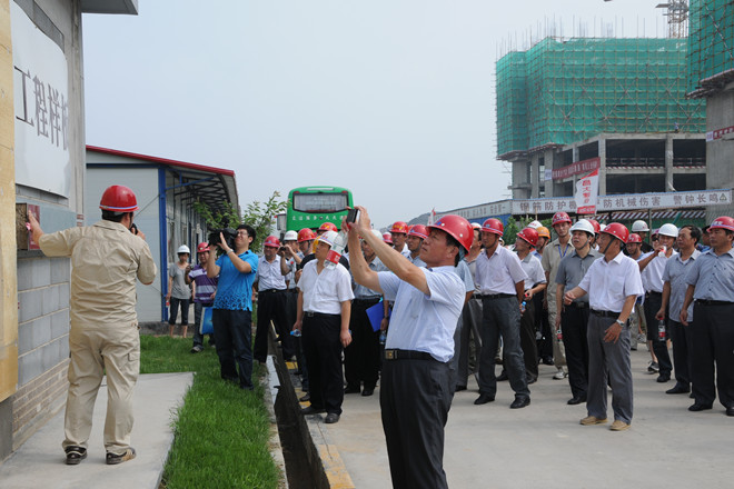7月25日上午,由濰坊市建筑工程管理處組織的“全市施工現(xiàn)場綜合管理樣板工程暨預攪拌砂漿推廣現(xiàn)場會”在集團公司第四分公司承建的金融廣場舉行。來自濰坊各縣市區(qū)、市屬開發(fā)區(qū)建工處(局)分管主任(局長)、有關科室負責人;全市房屋建筑施工總承包一級企業(yè)和部分二級企業(yè)分管經(jīng)理,部分預攪拌砂漿生產(chǎn)企業(yè)代表共計120余人參加了現(xiàn)場會。集團公司總工程師張連悅出席現(xiàn)場會并做專題經(jīng)驗介紹,集團公司質量技術部、生產(chǎn)安全部、資產(chǎn)管理部等有關部門相關人員參加了上午的現(xiàn)場會。