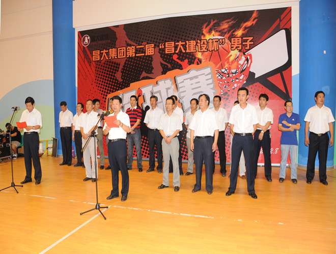 8月14日上午,集團第二屆“昌大建設杯”男子籃球友誼賽在市藝術中心籃球館開幕。集團公司高管層領導滕忠斌、李坤明、穆乃杰、張連悅、張學智、劉雁冰出席開幕式。來自集團第一分公司、第二分公司、第三分公司、第四分公司、第五分公司、第六分公司、第七分公司、第八分公司、第九分公司、安裝分公司、裝飾分公司、機施分公司、市政公司、集團總部的14支代表隊的領隊、運動員、啦啦隊員以及全體裁判員共計260余人參加了今天的開幕式。