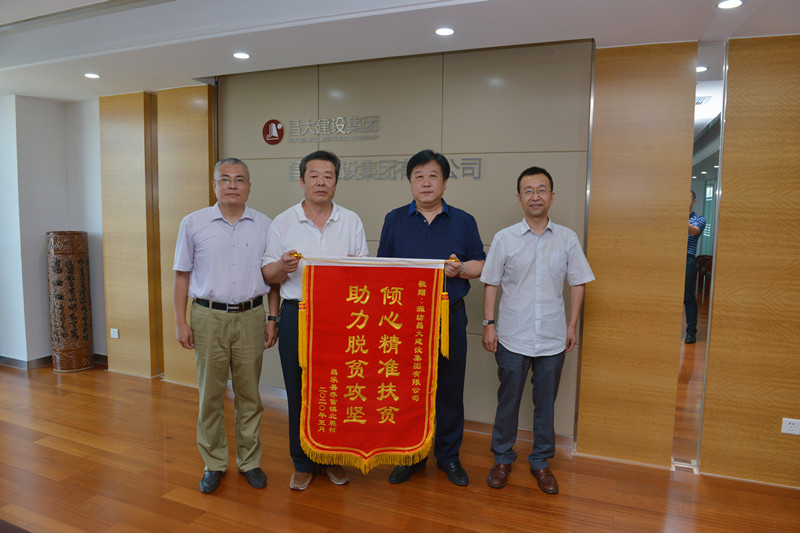 2020年7月20日上午,濰坊市工商聯(lián)副主席郭富斌、昌樂(lè)縣喬官鎮(zhèn)北展村第一書(shū)記劉波專程來(lái)集團(tuán)贈(zèng)送錦旗:傾心精準(zhǔn)扶貧 助力脫貧攻堅(jiān)。集團(tuán)總經(jīng)理朱九洲受贈(zèng)錦旗。集團(tuán)監(jiān)事會(huì)主席穆乃杰參加錦旗受贈(zèng)活動(dòng)。