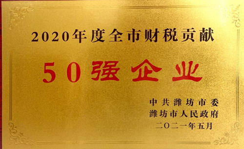 2021年5月11日,集團(tuán)辦公室將濰坊市委、市政府頒發(fā)的兩個(gè)重量級榮譽(yù)獎(jiǎng)牌領(lǐng)回:2020年度全市財(cái)稅貢獻(xiàn)50強(qiáng)企業(yè);2020年度全市高質(zhì)量發(fā)展領(lǐng)軍企業(yè)。