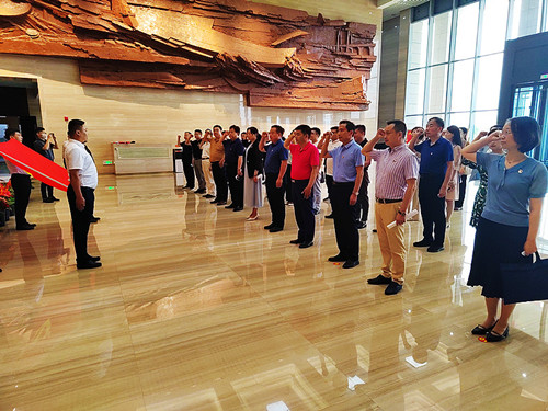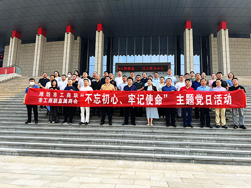 濰坊市直屬商會會長,魯西南商會副會長、秘書長,市工商聯(lián)機關(guān)相關(guān)人員約30人參加本次活動。本次活動以“不忘初心、牢記使命”為主題,與會人員參觀了使命?擔當主題展館,并重溫入黨誓詞;傳達學習了山東省第十二次黨代會精神,結(jié)合商會和企業(yè)實際圍繞學習貫徹落實好省黨代會精神,做好商會黨建,精準對接省委、市委中心工作所需,主動投身經(jīng)濟社會發(fā)展進行了座談交流。