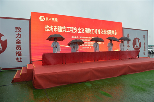 2022年6月23日上午,由濰坊市住建局組織的“濰坊市建筑工程安全文明施工標準化觀摩會”在集團一建公司總承包施工的渤海數(shù)字智谷項目現(xiàn)場舉行。濰坊市住建局黨組成員、市建筑業(yè)發(fā)展服務中心黨委書記、主任許增賢,經(jīng)濟開發(fā)區(qū)管委會副主任吳傳華出席。集團公司總裁朱九洲、安全總監(jiān)閆鵬、副總裁孟憲禮出席觀摩活動。