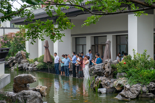 該第16期行業(yè)協(xié)會(huì)、商會(huì)諸位會(huì)長(zhǎng)、秘書長(zhǎng)在集團(tuán)公司期間,先后參觀了集團(tuán)企業(yè)展廳、建筑史館、黨建展廊、中頤龍湖康養(yǎng)小鎮(zhèn),深入考察了解了集團(tuán)公司的發(fā)展,對(duì)集團(tuán)公司的良性發(fā)展給予充分充分肯定和高度評(píng)價(jià)。在中頤龍湖康養(yǎng)小鎮(zhèn),生活服務(wù)總監(jiān)孫玉闖陪同參觀了小鎮(zhèn)已交付的頤園組團(tuán)、青龍湖公園、頤樂康養(yǎng)中心及頤養(yǎng)洋房樣板間并為大家做詳細(xì)講解,對(duì)康養(yǎng)小鎮(zhèn)規(guī)劃、建設(shè)、運(yùn)營(yíng)、康養(yǎng)服務(wù)理念及康養(yǎng)服務(wù)內(nèi)容等方面有了深入的了解。