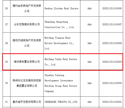 集團泰和置業(yè)再獲全國房地產(chǎn)開發(fā)企業(yè)AAA級信用等級