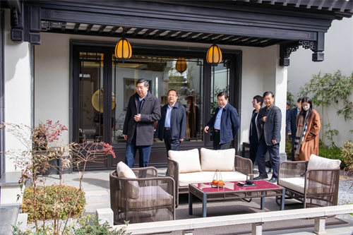 2023年3月25日上午,山東省住建廳廳長王玉志到集團(tuán)中頤龍湖康養(yǎng)小鎮(zhèn)項(xiàng)目參觀調(diào)研,安丘市委書記賈勤清,市住建局黨組書記、局長鐘光文、副局長戴玉霞,集團(tuán)董事長徐鵬強(qiáng)陪同調(diào)研。王玉志廳長依次參觀了小鎮(zhèn)服務(wù)中心、頤園中式合院園區(qū)與樣板間、小鎮(zhèn)頤樂康養(yǎng)中心。聽取了小鎮(zhèn)總體規(guī)劃布局匯報(bào),對中式合院的建筑文化、小鎮(zhèn)宜人的自然環(huán)境以及康養(yǎng)配套運(yùn)營方面的精心考量與服務(wù)經(jīng)驗(yàn)給予了高度評價(jià)。