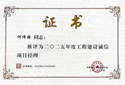 昌大建設集團憑借長期穩(wěn)定的誠信經(jīng)營與優(yōu)良的履約記錄,連續(xù)多年通過“AAA”級信用企業(yè)評審,并再次獲評“工程建設誠信典型企業(yè)”。集團董事長徐鵬強被授予“工程建設誠信企業(yè)家”榮譽稱號。集團旗下裝飾幕墻公司何偉強榮獲“工程建設誠信項目經(jīng)理”稱號。