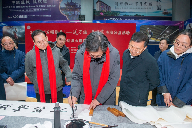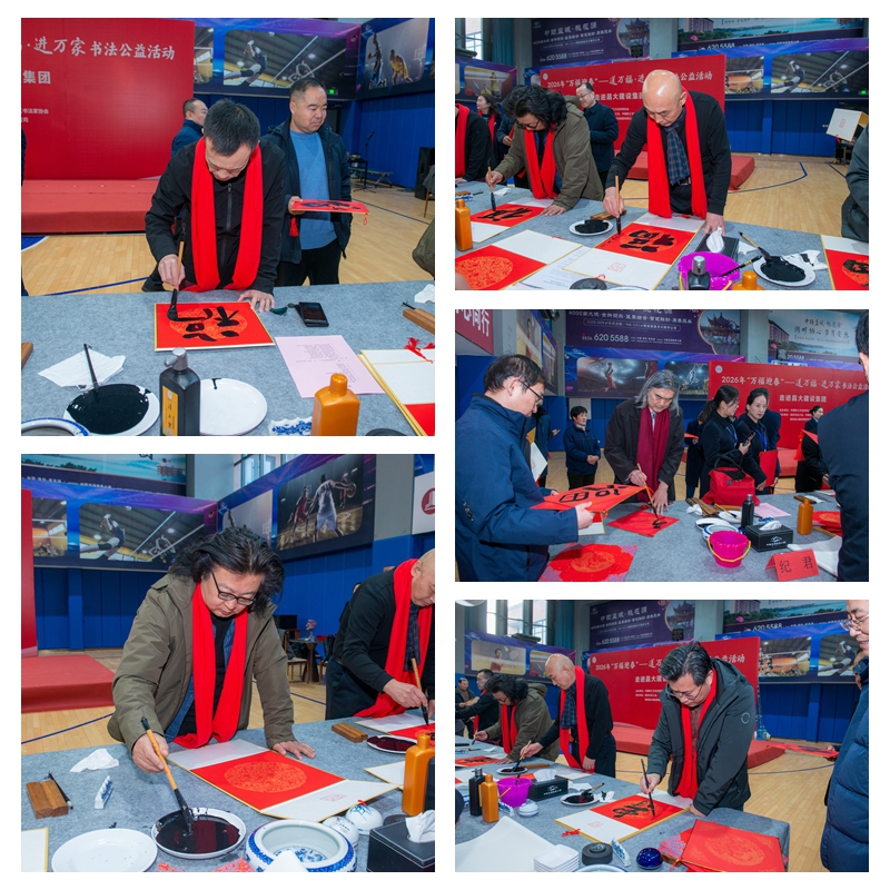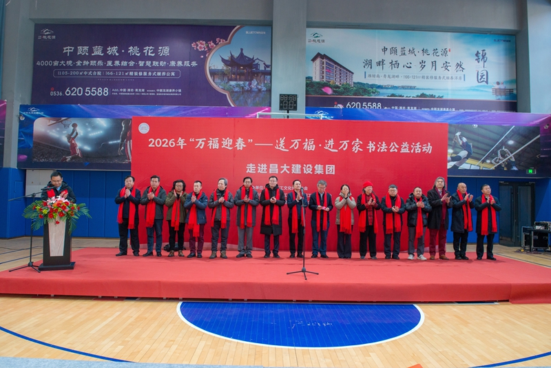 2026年1月23日下午,2026年“萬福迎春”——送萬?!みM(jìn)萬家書法公益活動在集團(tuán)中頤龍湖康養(yǎng)小鎮(zhèn)成功舉辦。中華全國總工會原黨組成員、經(jīng)費(fèi)審查委員會主任、中國職工文化體育協(xié)會會長李守鎮(zhèn),中國職工文化體育協(xié)會副會長、中國書協(xié)會員葛海鷹,濰坊市人大常委會黨組副書記、副主任、市總工會主席田民利,濰坊市總工會黨組書記、常務(wù)副主席賈平,中國書協(xié)理事、中國職工書協(xié)副主席、中國鐵路書協(xié)主席施恩波,中國文聯(lián)機(jī)關(guān)黨委原常委、中國書法家協(xié)會黨總支原書記、四五六屆理事吳震啟,中國書法家協(xié)會理事、中國美術(shù)家協(xié)會理事、中央文史館書畫院院部委員梁永琳,山東省書協(xié)副主席、山東青年政治學(xué)院教授亓漢友,山東省書協(xié)副主席、淄博職業(yè)技術(shù)大學(xué)教授鄒方臣,中國書協(xié)理事、山東省書協(xié)副主席、濰坊市文聯(lián)書畫院院長逄春偉,山東省書協(xié)主席團(tuán)委員、濟(jì)南市書協(xié)副主席胡宗江,山東港口書畫協(xié)會會長、日照市書法家協(xié)會主席丁履磊,一級美術(shù)師、山東省書協(xié)顧問、濰坊市書協(xié)主席紀(jì)君,中國書協(xié)會員、中國美協(xié)會員、北大訪問學(xué)者、山東美協(xié)理事、濰坊美協(xié)副主席季樂勝,集團(tuán)公司黨委書記、董事長徐鵬強(qiáng),黨委副書記、總裁朱九洲等領(lǐng)導(dǎo)和書法家出席活動。集團(tuán)公司副總裁吳杰、孟憲禮參加了活動,活動由集團(tuán)公司副總裁惠守江主持,各主辦、承辦單位的有關(guān)負(fù)責(zé)人和員工代表、小鎮(zhèn)業(yè)主代表共150余人參加活動。